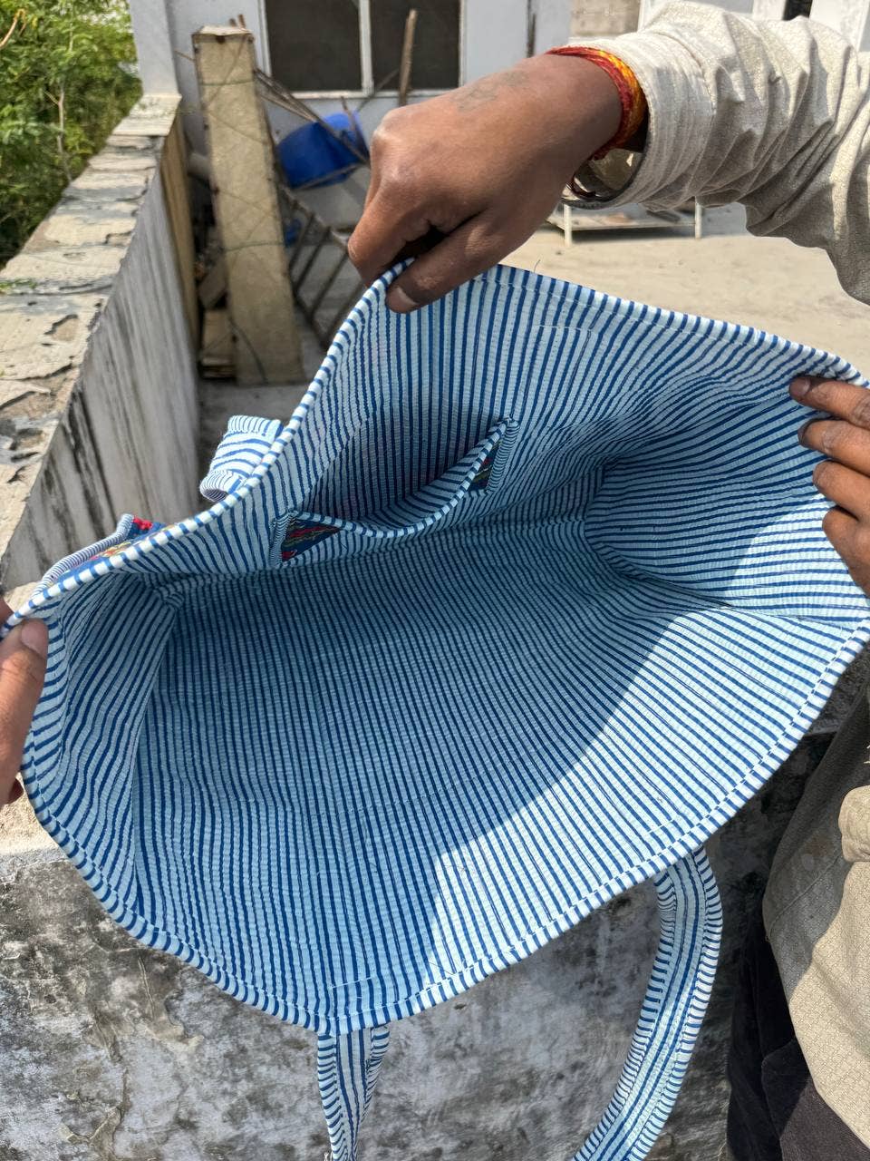 Cotton quilted travel bag made by Indian Artisans, This cotton quilted shopping bag is totally unique and multi purpose. Use this for your grocery or as a travel bag. Perfect to suit everyone.