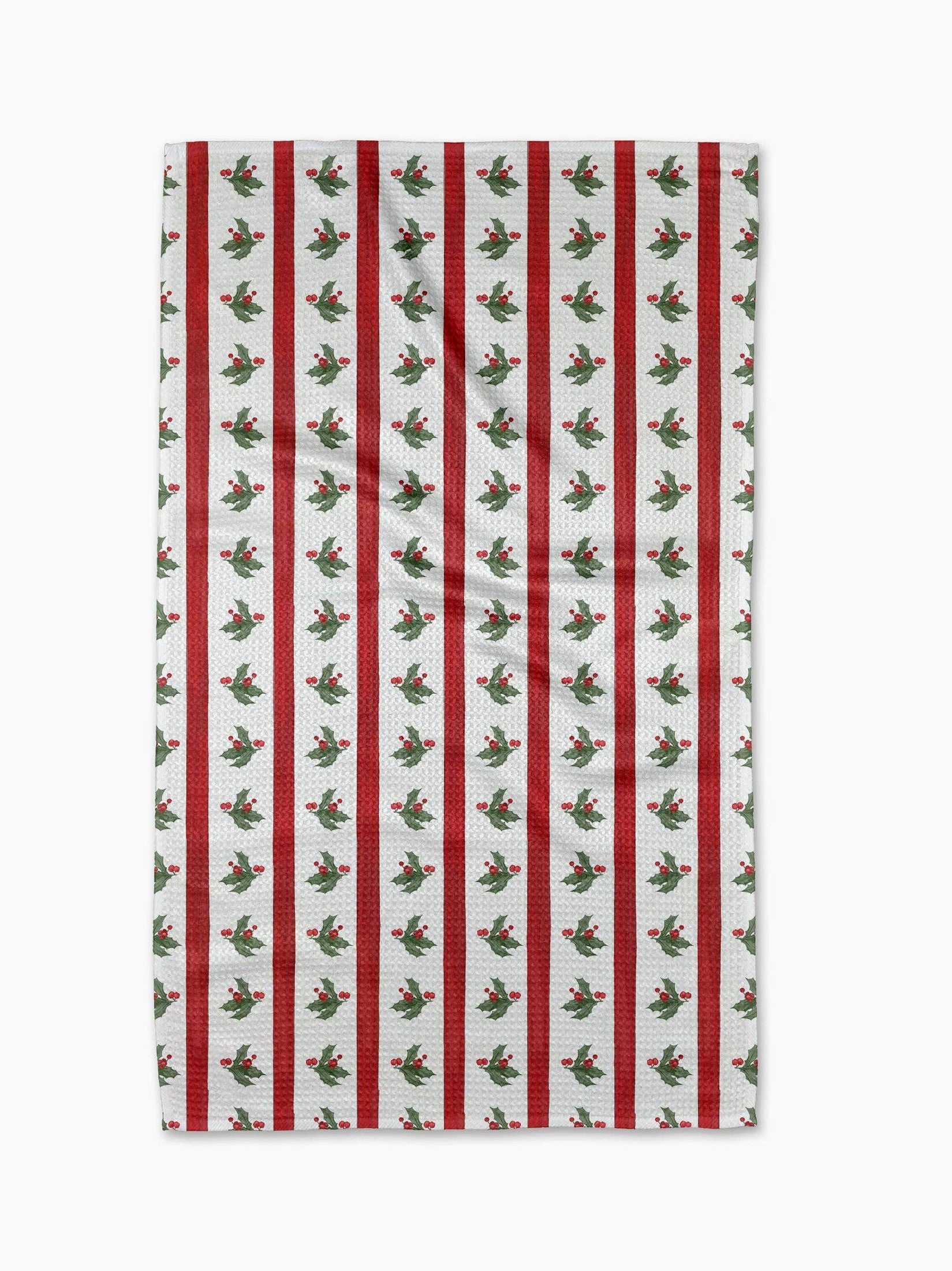 Christmas Holly Stripe Tea Towel
