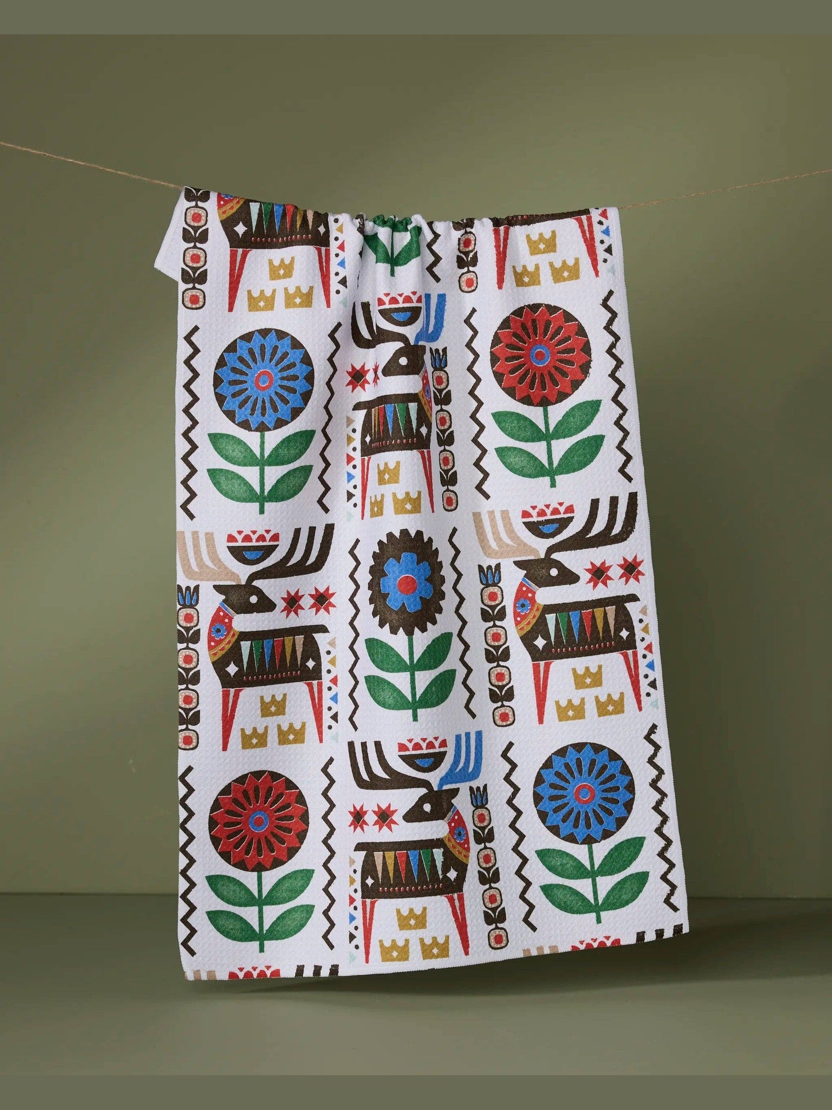Folk Deer Tea Towel