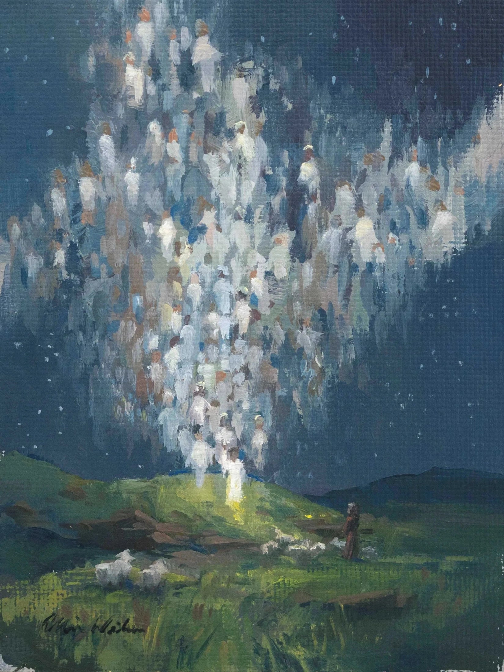 We have added this beautiful frame with glass to make this inspirational art print a reminder of that glorious night long ago when glories streamed from heaven afar, and heavenly hosts sang "Allelulia! Christ the Savior is Born!"