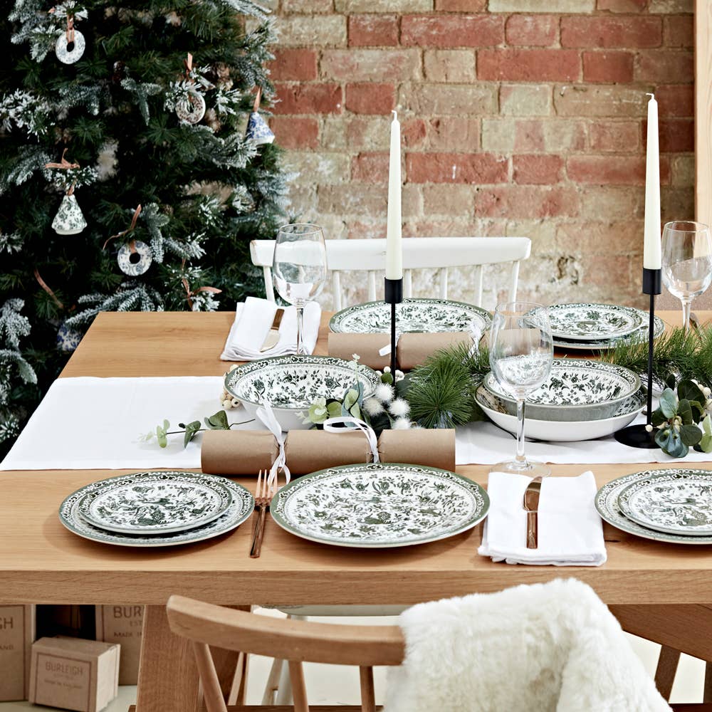 Present your refreshments in style with this large Etruscan jug from our Green Regal Peacock range. The striking peacock motifs and traditional shape of the jug bring elegance and refinement to the table. Uniquely decorated by skilled craftsmen with Burleigh's centuries-old technique of tissue transfer printing from hand-engraved copper rollers.