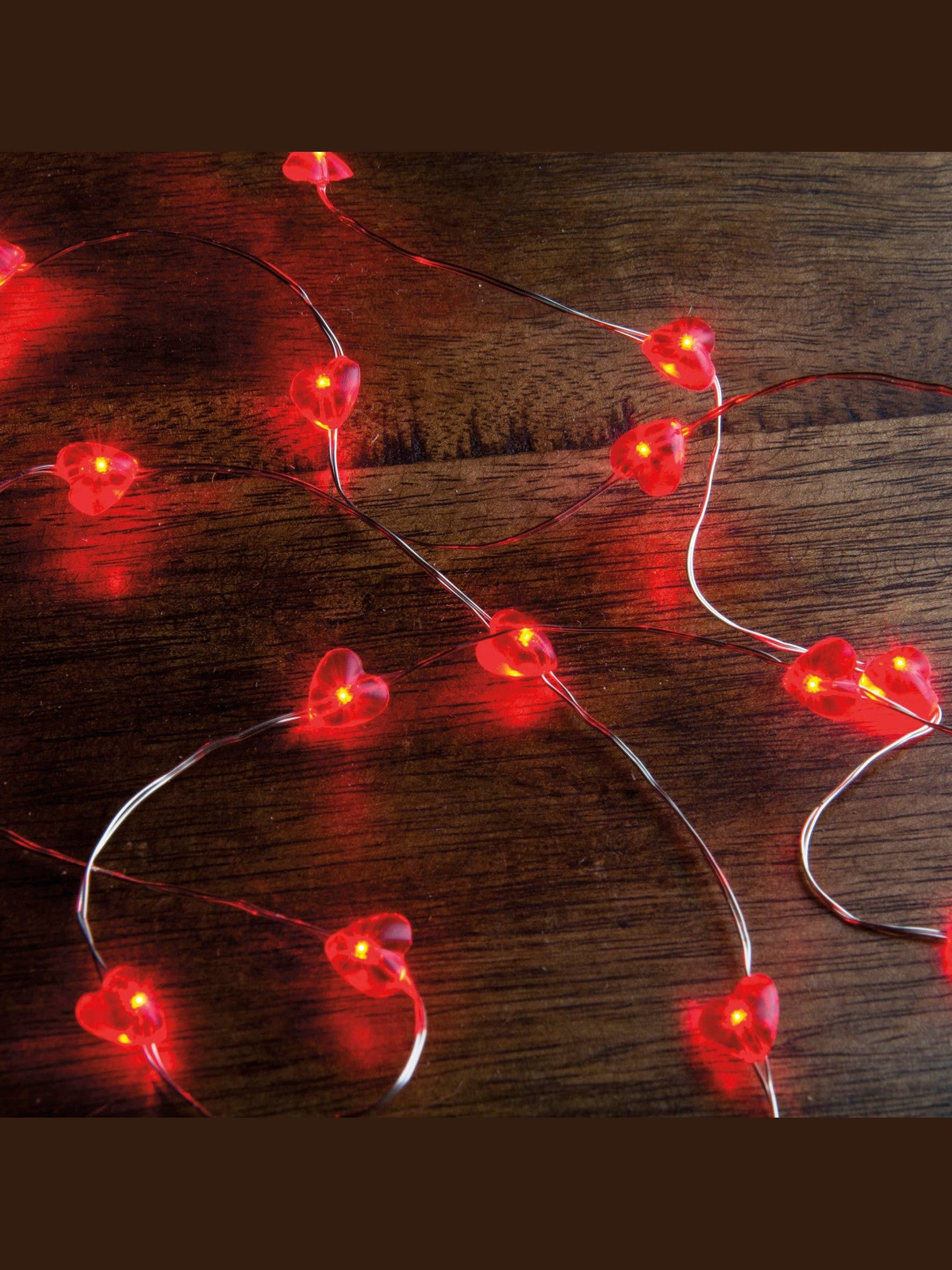 Be it for Valentine's Day or just because, heart wire lights from our Decorative Lighting Collection will add a touch of love and romance to any space! Our heart wire lights contain a 6-hour timer and take 3 AA batteries (not included).