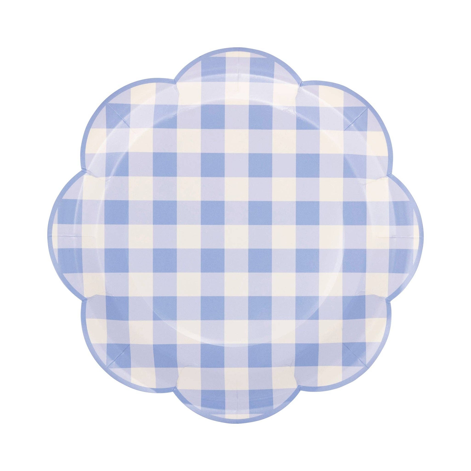 Add a touch of spring to your table with our Blue Gingham Paper Plate. The classic gingham design in a refreshing blue hue will bring a playful and fun vibe to your next gathering. Durable and stylish, these plates are perfect for any occasion. * 8 scalloped paper plates * 9.25" x 9.25"